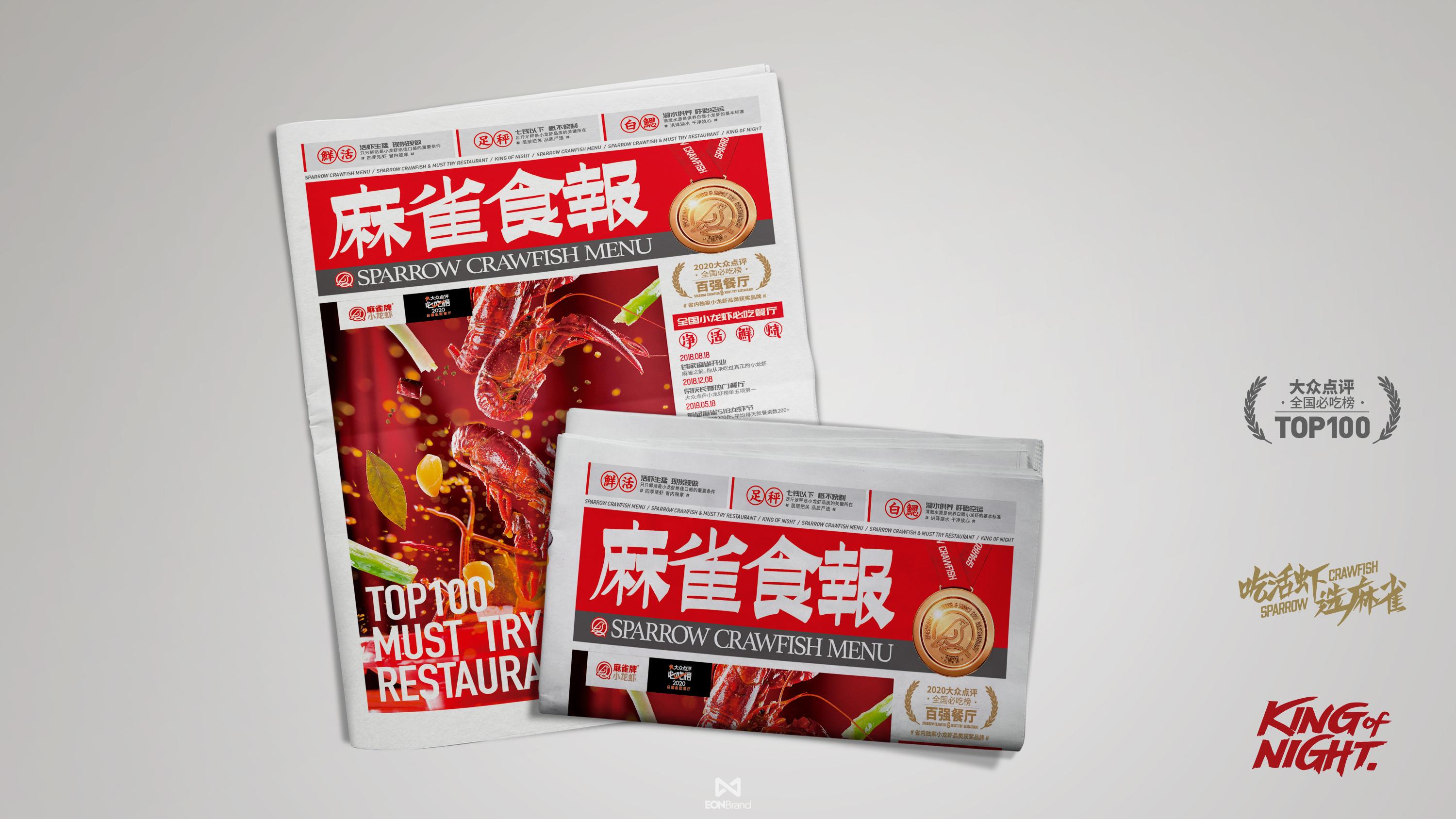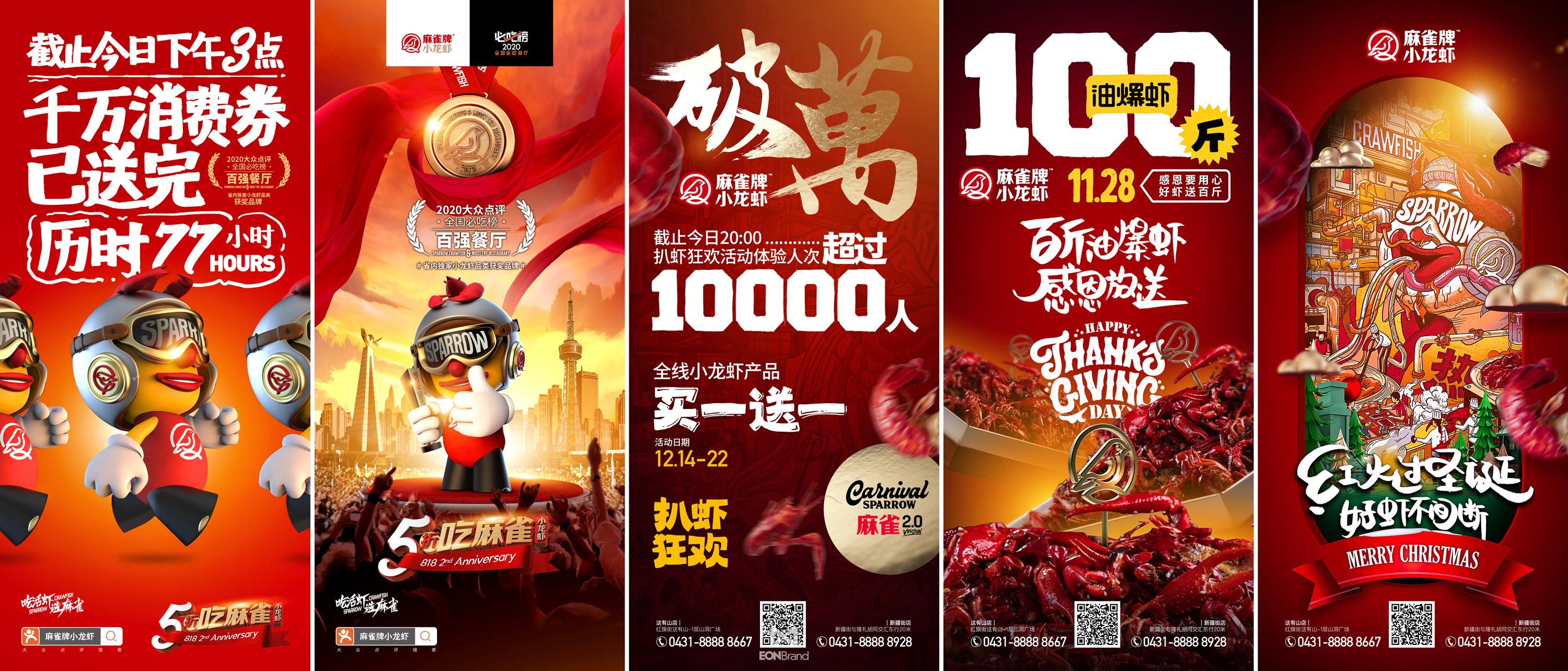 Eonbrand has been a brand design service provider since the inception of the Sparrow Crayfish brand in 2018, and Sparrow Crayfish is Changchun's local catering brand. Known locally for its Slogan "Eat live Shrimp and choose Sparrow", Eonbrand has created a unique brand image for Sparrow crayfish, ensuring a consistent brand style, attracting the target customer group, enhancing competitiveness, and enhancing brand awareness. These design services not only make the Sparrow Crayfish brand more visible and unique in the market, but also help the brand build an emotional connection with customers, promoting business growth and word of mouth.