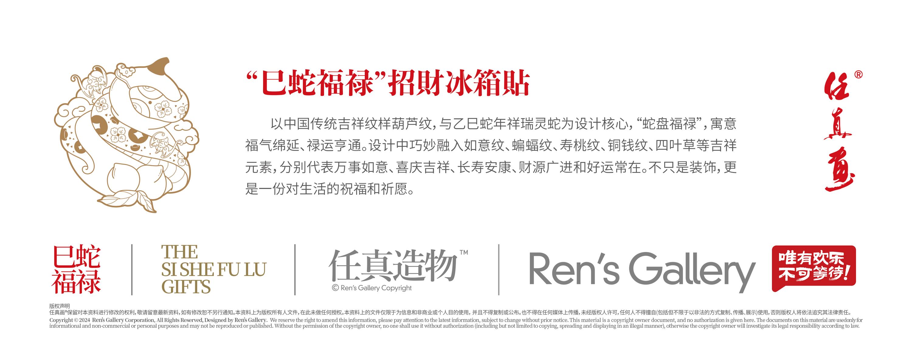 With the Chinese traditional auspicious pattern gourd pattern, and the Yishi snake year Xiangrui Ling snake as the design core, "snake plate Fu Lu", meaning good fortune stretching, luck and prosperity. The design cleverly integrates Ruyi grain, bat grain, peach grain, copper coin grain, four-leaf clover and other auspicious elements, respectively representing all the best of luck, happy luck, longevity and health, financial resources and good luck often in. Not only decoration, but also a blessing and prayer for life.